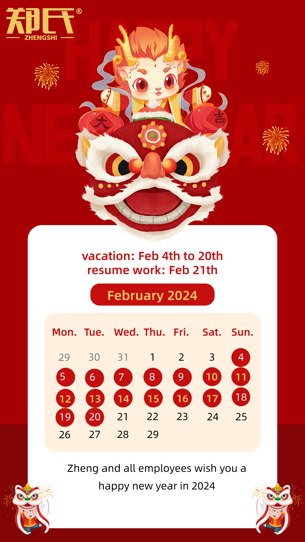 Zhengshi and all staff wish you all the best in the Year of the Dragon!